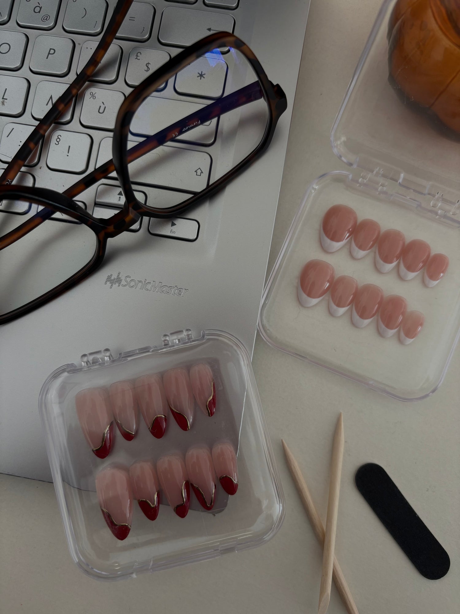 Si tu les retires en douceur et que tu les nettoies bien, tu peux les porter à nouveau. C’est l’un des grands avantages des press on nails faits-main.