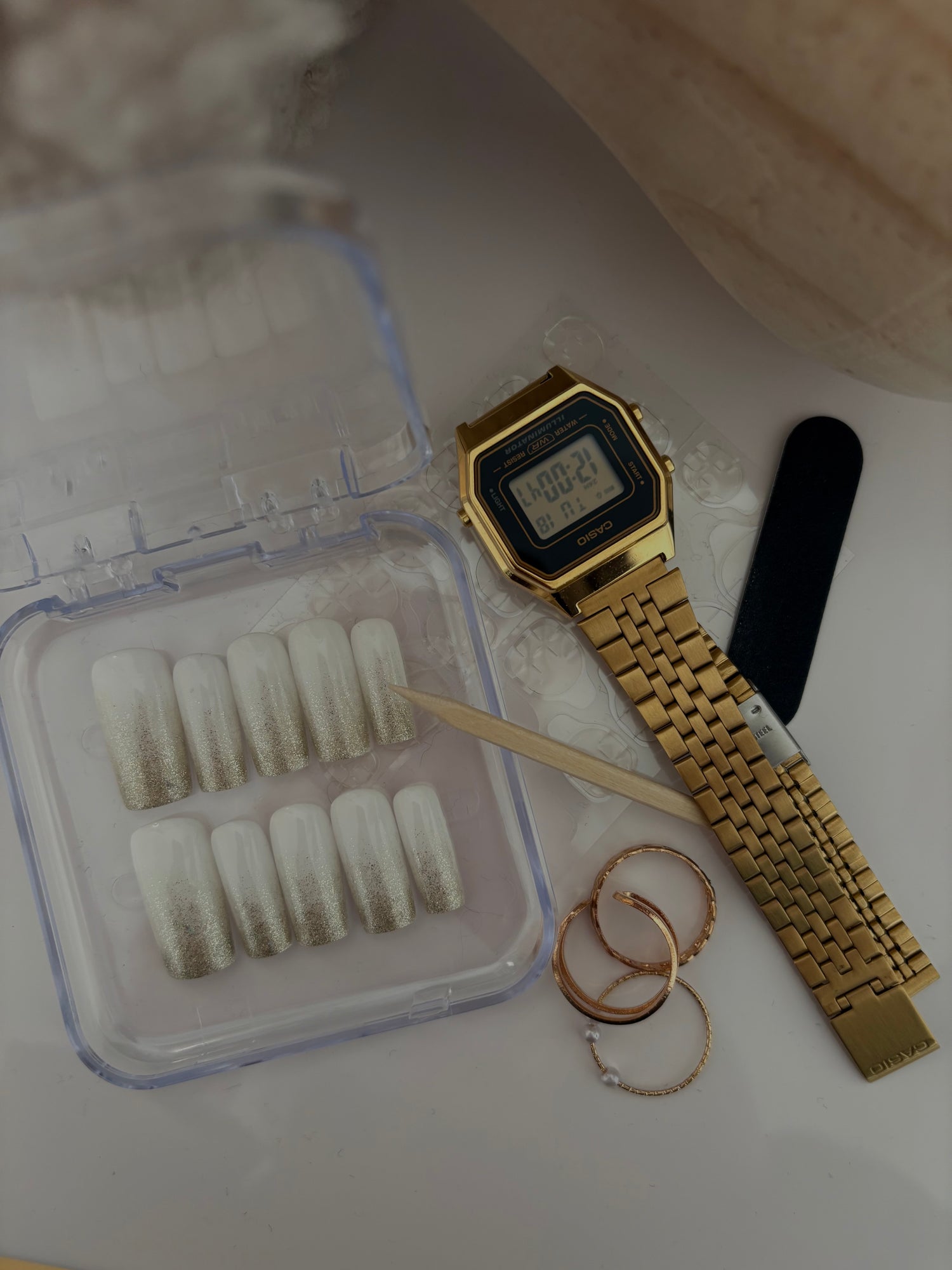 Les press on nails sont parfaits si tu veux des ongles longs juste le temps d’un événement : mariage, baby-shower, week-end, vacances ou soirée. Ils se posent en quelques minutes, tiennent sans souci pendant 1 ou 2 jours, et s’enlèvent facilement sans abîmer tes ongles naturels. C’est l’idéal si tu n’as pas l’habitude de porter des ongles longs au quotidien – ça te permet de briller sans être gênée le lendemain.